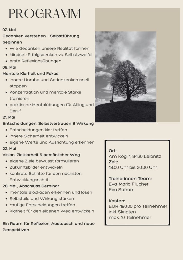 um ihre Gedanken bewusst zu steuern, Klarheit zu gewinnen und ihre Zukunft aktiv zu gestalten.